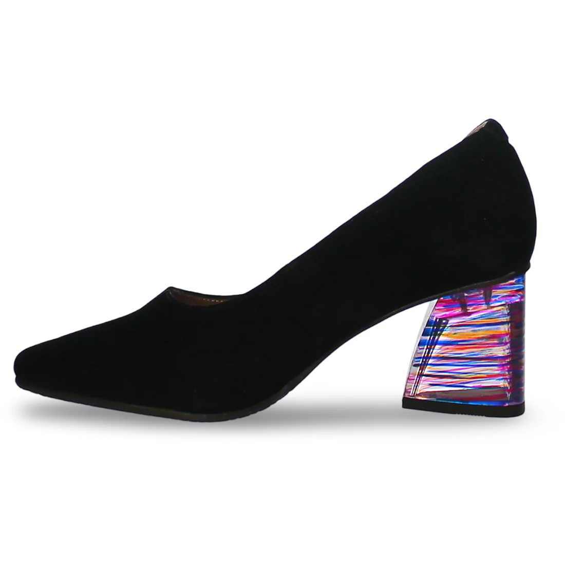 Experience the impact of these stunning, edgy pumps. The nubuck uppers add sophistication, while the uniquely artistic and colorful sculpted block heel makes a bold statement. With a pointed toe and thickly padded insoles, these pumps are as comfortable as they are stylish. Don't miss out on these very cool shoes.