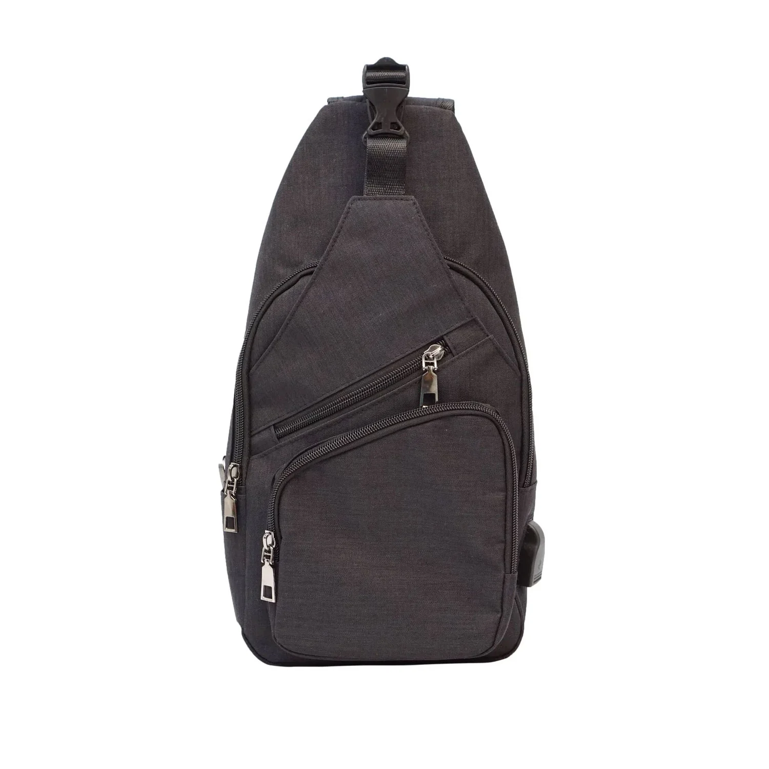The zipper on the main compartment can be clipped closed, preventing someone from easily unzipping your bag and stealing your things. There's a USB port outside of the pack so you can charge your phone while using it. Place a portable power bank (not included) inside of the pack and connect it to the cable in the bag. Now you can plug your phone to the external port and charge without opening your bag.