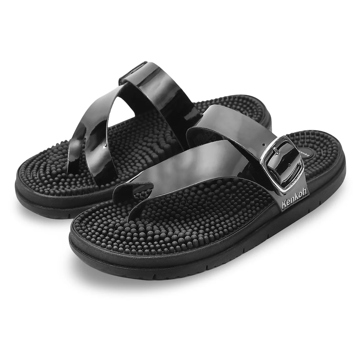 Discover the comfort and style of the "Nara Reflexology Thongs" by Kenkoh. Inspired by the historic beauty of Nara City in Japan, these thongs are as beautiful as they are beneficial. With a shiny metallic finish and adjustable double-crossed straps, they not only look great but feel great too.