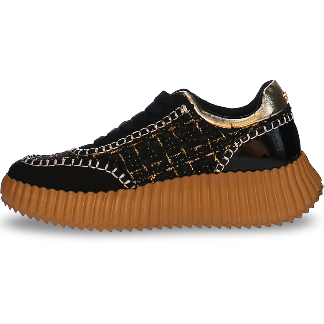 Elevate your style with Whipstitch sneakers. These low-top walking sneakers feature stitch detailing on leather and textile uppers, a flat chunky heel, and a round toe. The lace-up vamp and padded footbed provide comfort and support, while the rubber outsole adds durability. With padded insoles and a slight rocker sole, these sneakers are both on-trend and incredibly comfortable. Perfect for any occasion, these sneakers will give you a confident and stylish step.