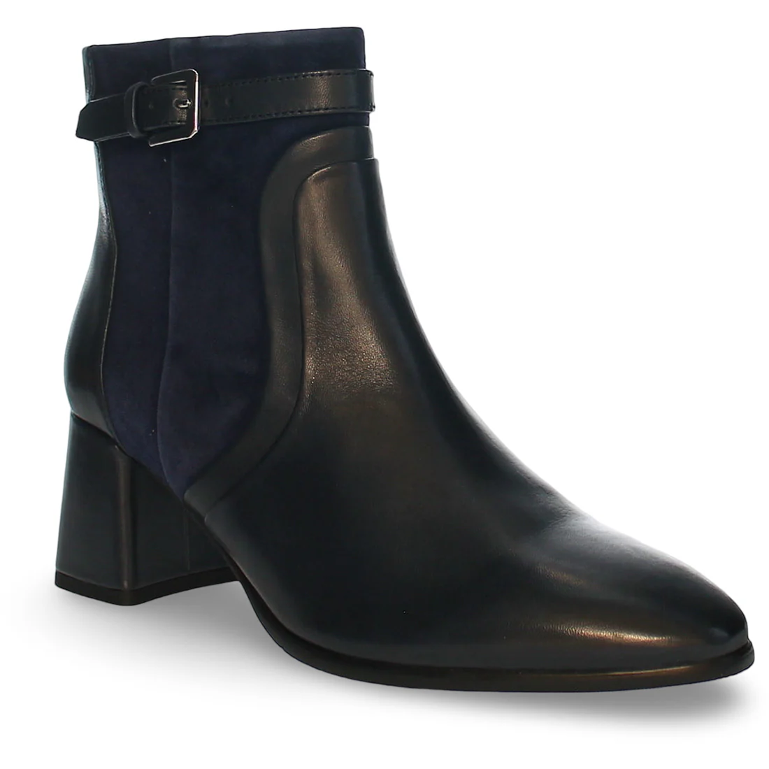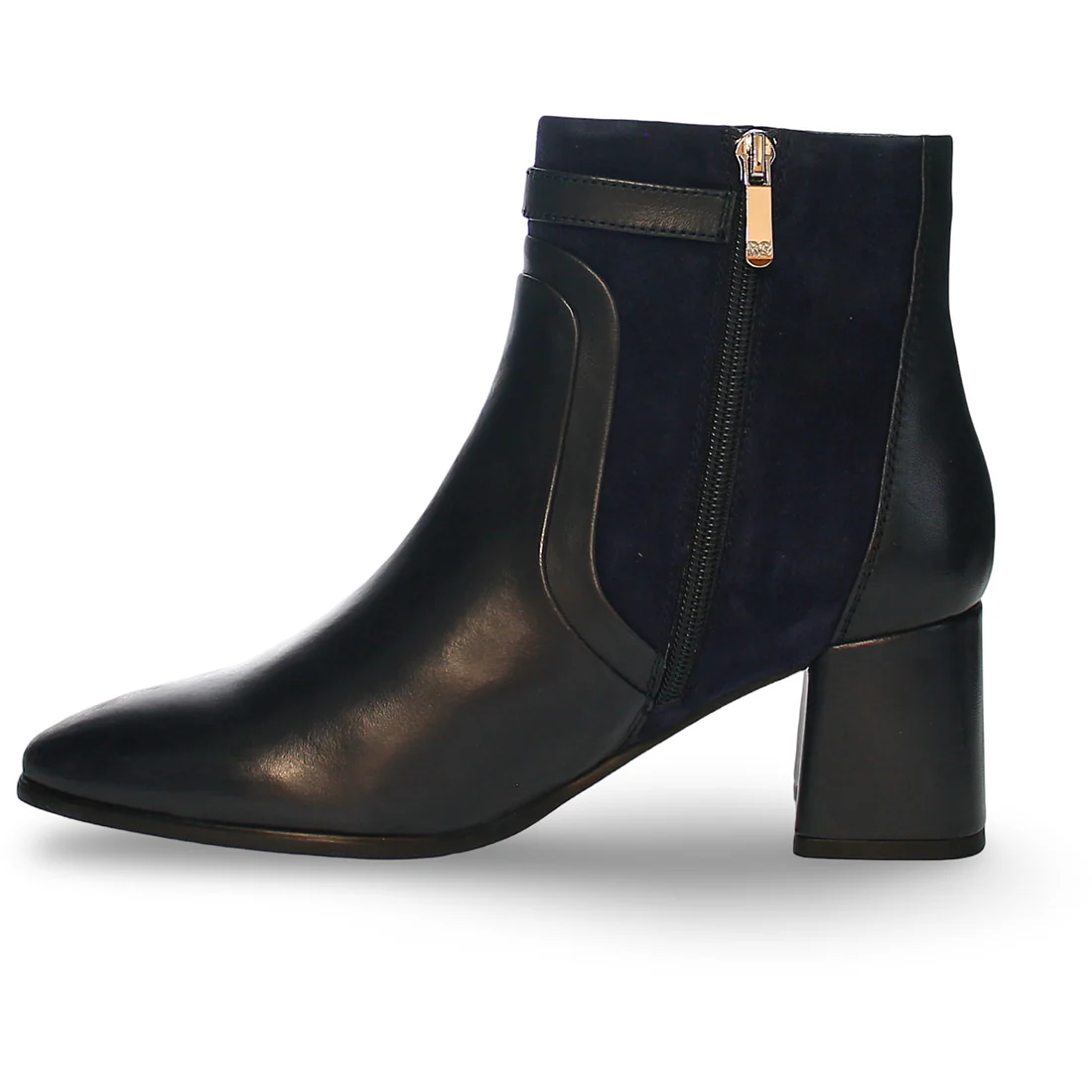 Crafted from Delice leather in Navy, the Millie ankle boot offers a sleek 60 mm heel and velvet lining with short hair fur for added comfort. An interior zipper allows easy fastening, while the covered heel and detailed stitching enhance its sophisticated look.
