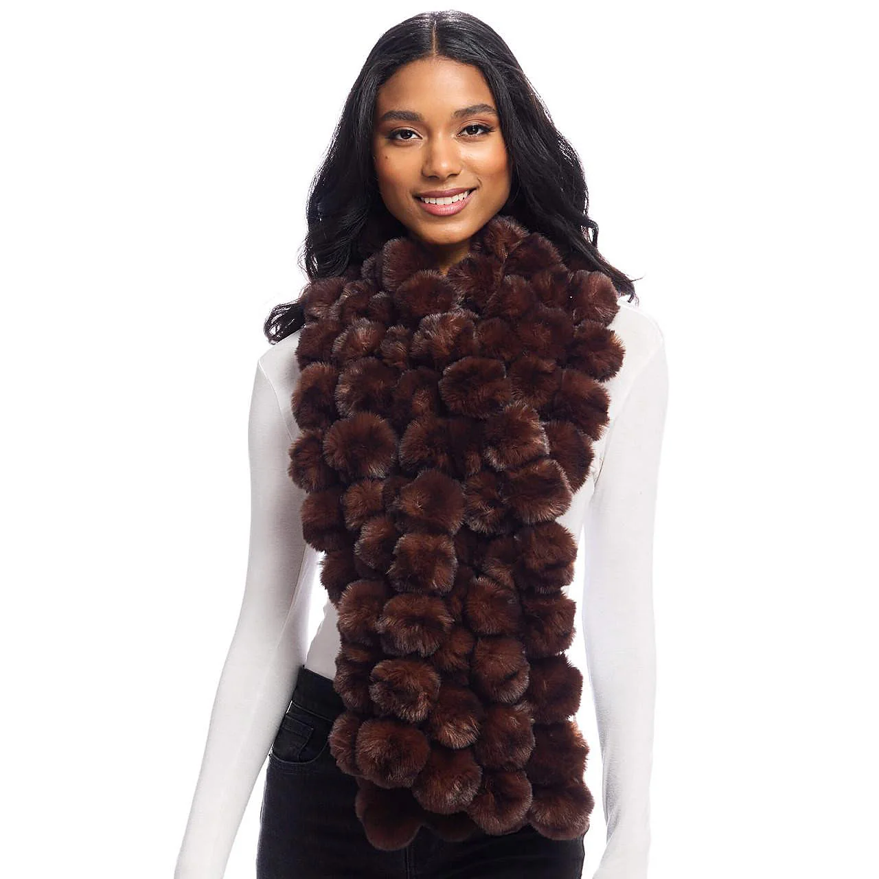 Hundreds of poms are knitted together to create our Poppy Pull-Through Scarf. An easy way to refresh a dated winter coat or elevate a simple sweater or knit tee, the versatile Whiskey Mink Poppy Pull-Through works both outdoors and in. Unique and fun, this chunky, super-soft and texture-laden scarf practically ties itself. Measuring 8" x 56", you'll simply pull one scarf end through a slit. VoilĂ - behold accessory perfection. Alternatively, the Poppy Pull-Through is long enough to loop around the neck.